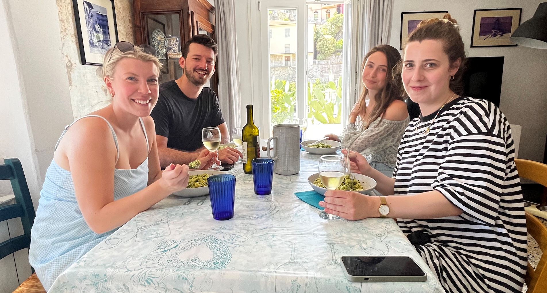 You can try your hand at making trofie pasta, use my grandmother’s mortar to make pesto, paint with wine, participate in breathing exercises to enhance your wine tasting experience, and much more.